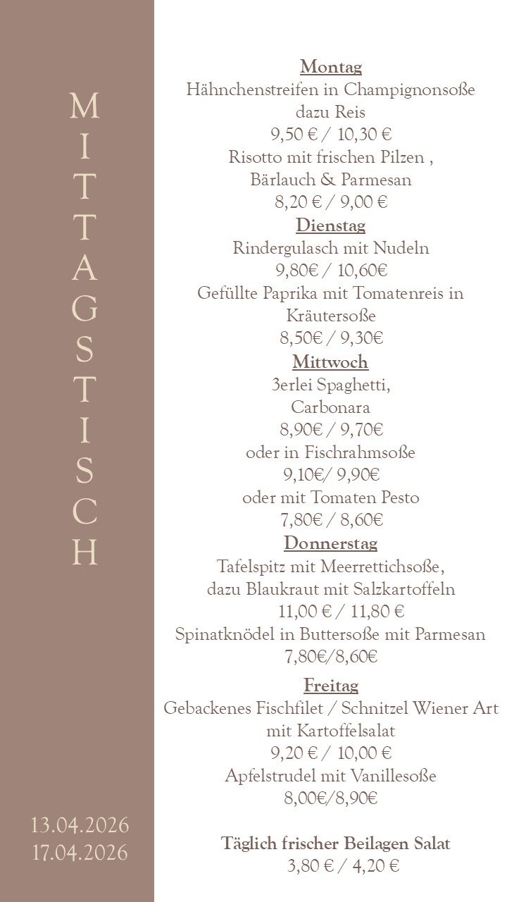 Den aktuellen Speiseplan & Wochenendkarte finden Sie hier: